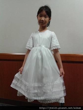 在J今年6月要洗禮之前,我想幫她買套白色的洋裝,讓她在洗禮會上穿。但我碰到一個大問題:J的身高已經超過童裝的尺寸,必須買少淑女服飾,但他才只有8歲,喜歡的款式還是很夢幻的公主澎澎白紗裙,少淑女服飾沒有這麼夢幻可愛的款式。