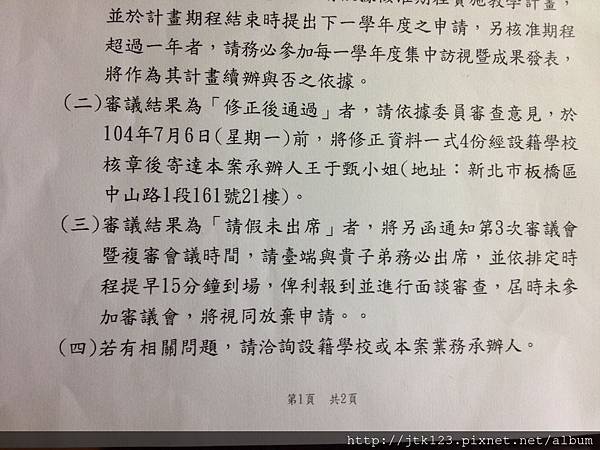 - 1. 教育局當初在通知審議結果的公文上根本沒告知只通過一年,沒有任何書面告知,甚至連面談時或打電話的口頭告知都沒有!就算是慣例,請給我看相關規定的行政命令,就算是不成文的慣例,教育局也應該確實做到告知的動作吧!難道教育局覺得:你應該知道,所以我不用說。不好意思,正好我不知道,這樣應該誰來負責?