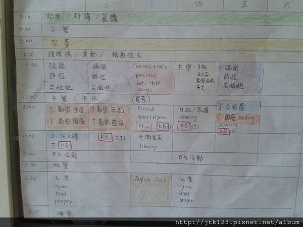 這份時間表記錄的是姊姊J小學三年級,妹妹T小學一年級,弟弟2-3歲時的生活作息。